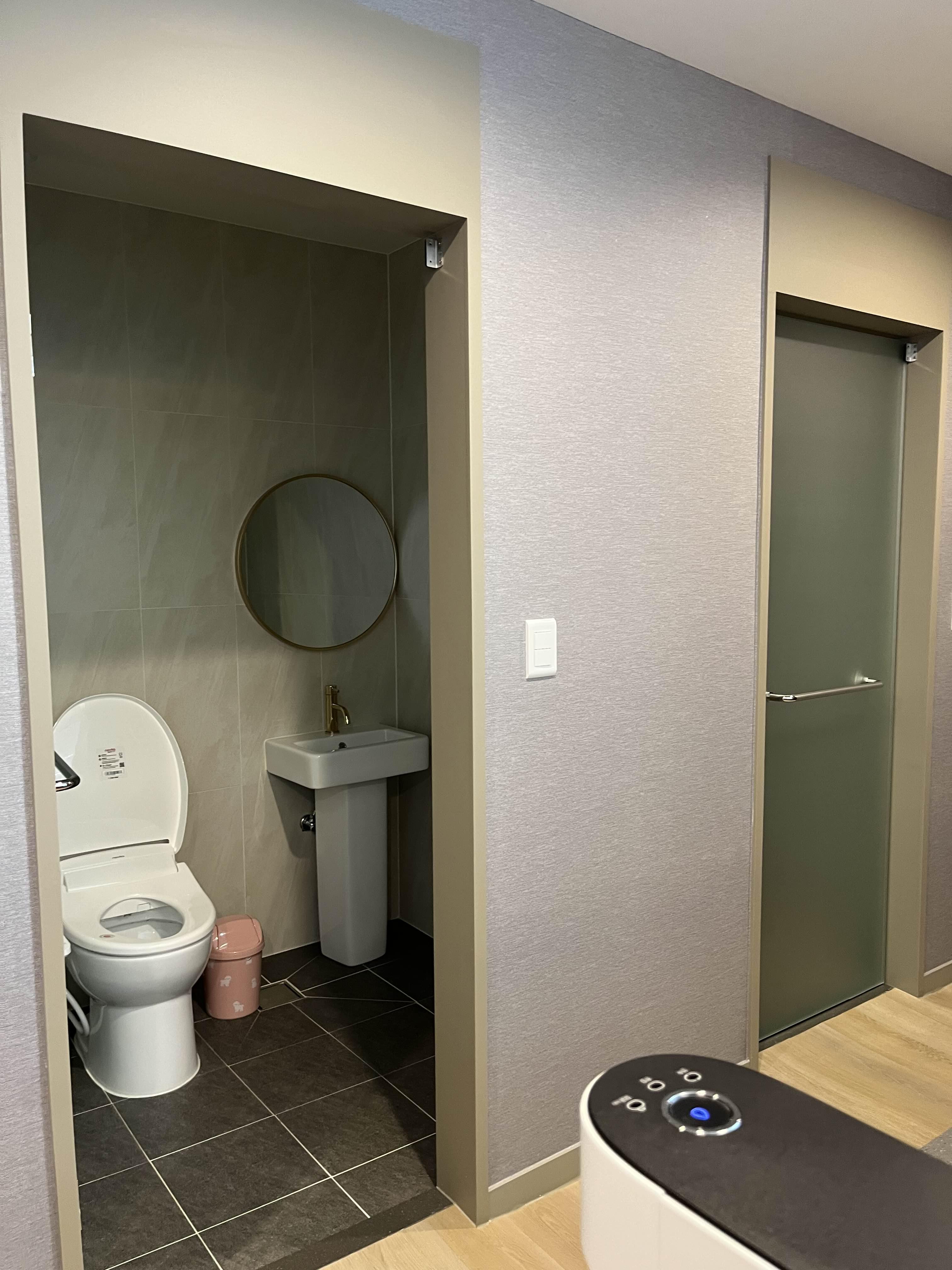 VVIP룸은 화장실과 샤워실이 구분 되어 있다! 그리고 공기 청정기는 물론, 공기 살균기, 정수기, 안마기, 의류 청정기, 미니 냉장고 등이 있어 더욱 쾌적하게, 안락하게 지낼 수 있다는 점이 만족스럽다!