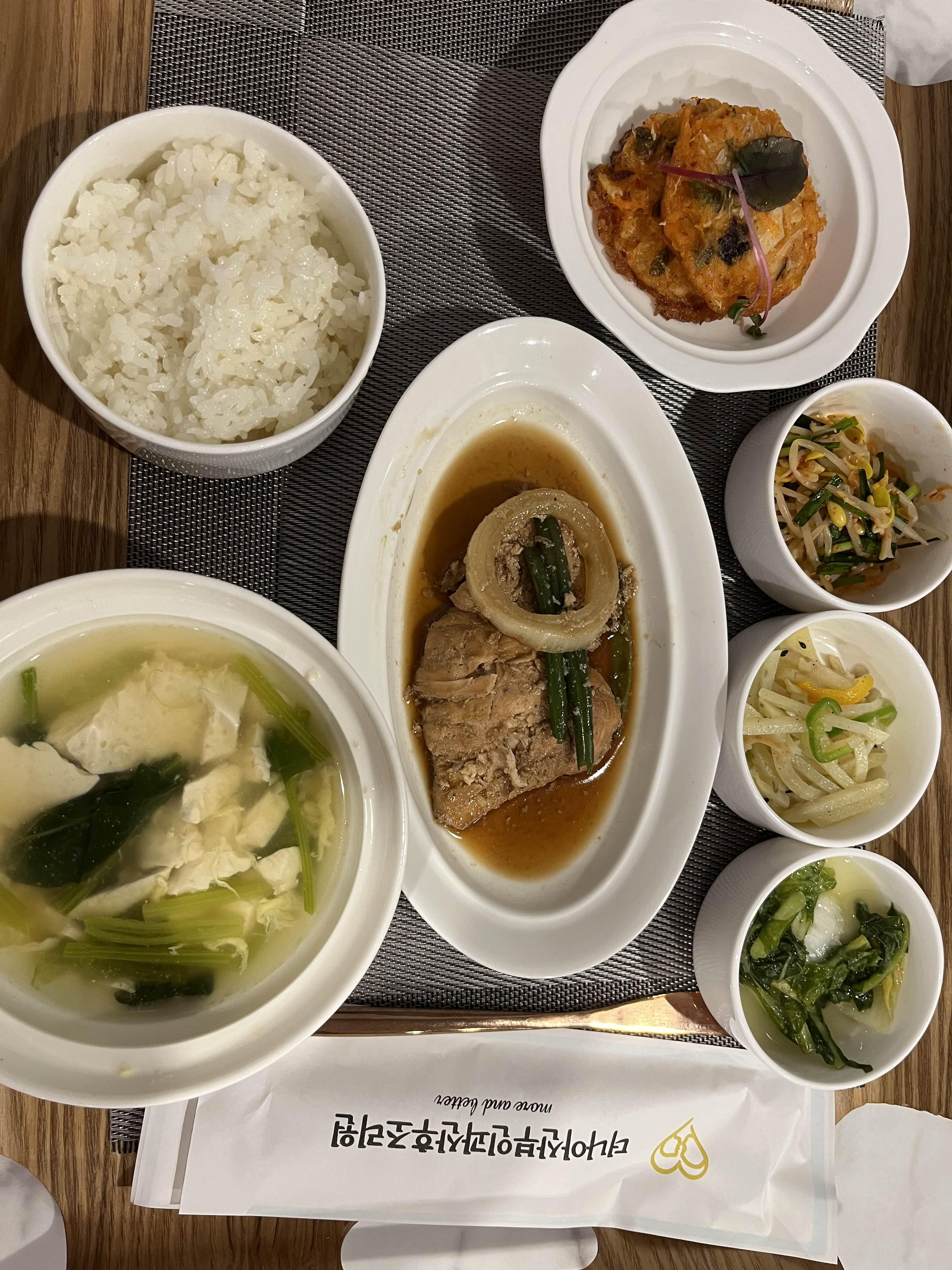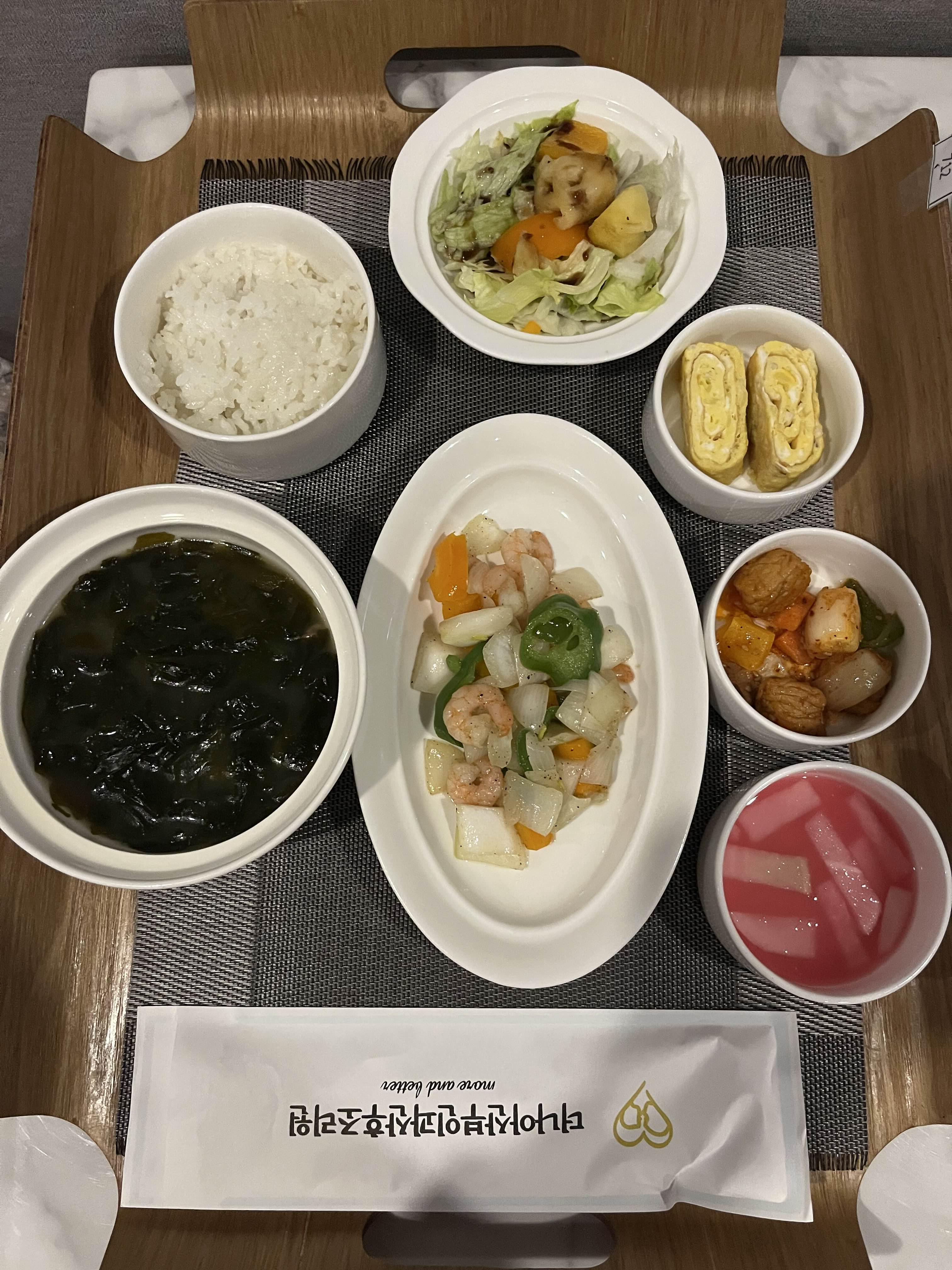 간도 적당하고 맛도 좋고 따뜻한 식사이다! 게다가 난 생선구이를 먹질 않아서 말씀 드렸더니 오징어나 새우가 들어간 요리, 달걀 요리 등으로 대체해서 가져다 주셨다! 개개인의 취향을 고려해서 식단을 맞춰 주신 점도 더나아산후조리원의 장점인 것 같다! 센스쟁이! 후흣